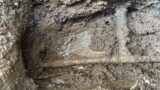 お客様にご了解をいただき植栽をよけながら掘ってみると給水管からの水漏れを発見できました。