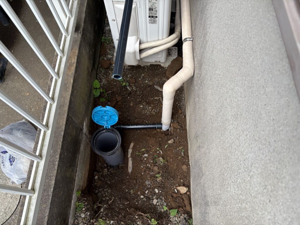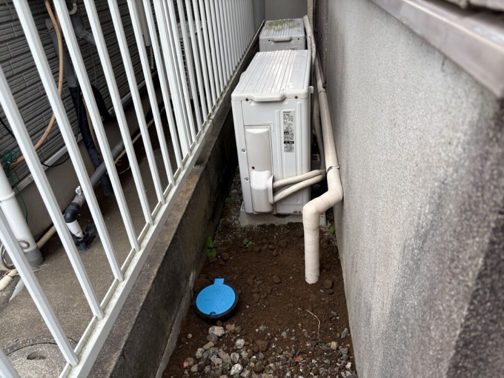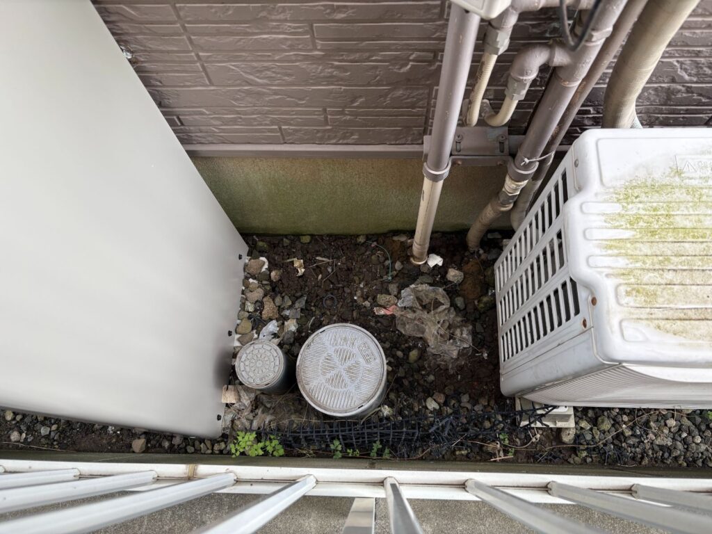 給水管の集中しているであろう屋外には室外機や排水マス、プロパンガスなどが置かれていて掘削調査が困難です。