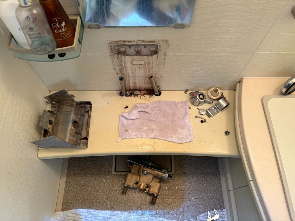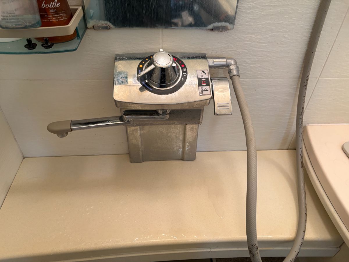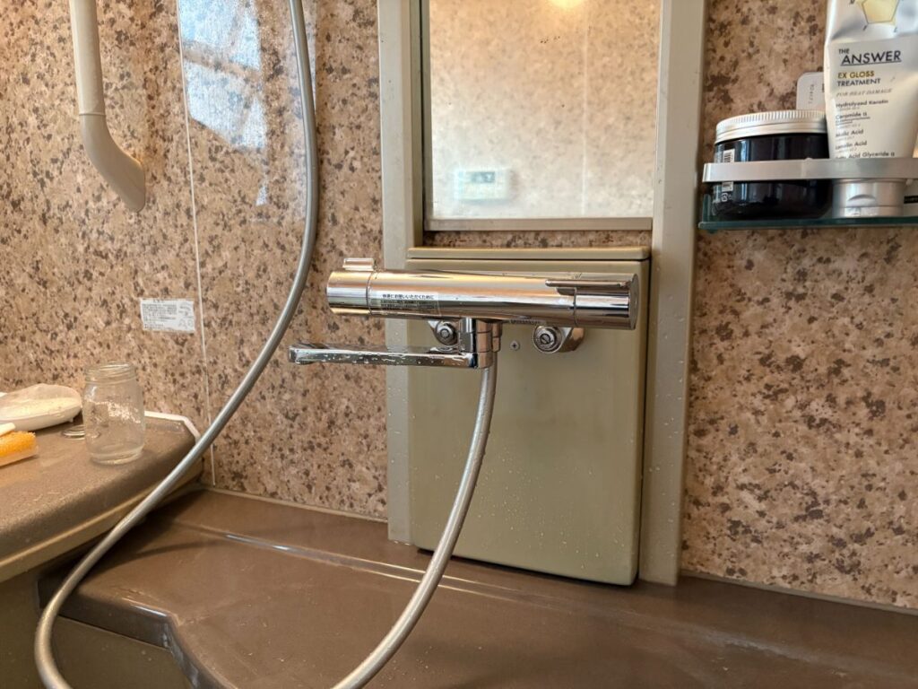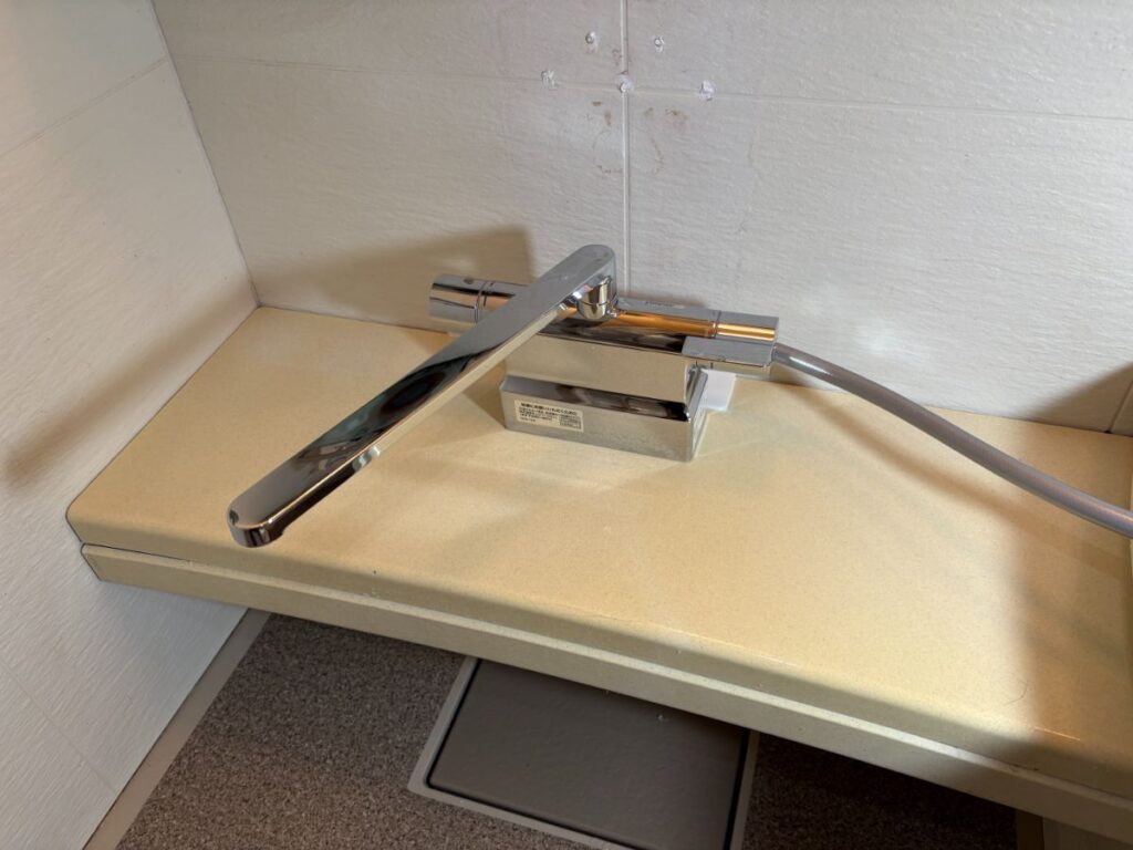壁付サーモ水栓の取り付けが出来ない旨をご説明し、台付き水栓(デッキタイプ)へ交換する方法でお見積りご提案をさせていただきました。