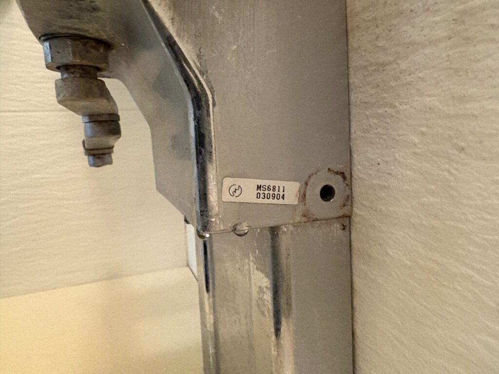 品番はMS6811で共通ですが、水栓本体が壁に固定され、カウンター天板へシルバーのカバーがあります。このスペースに給水・給湯管がありカウンターカバーの下に通り接続されているようです。