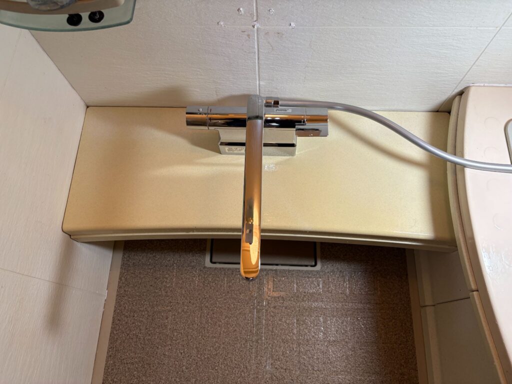 今回は壁付サーモ水栓(TBV03401J1)ではなく、台付き水栓(TBV03423J1)への交換する工法をご案内させていただきました。
