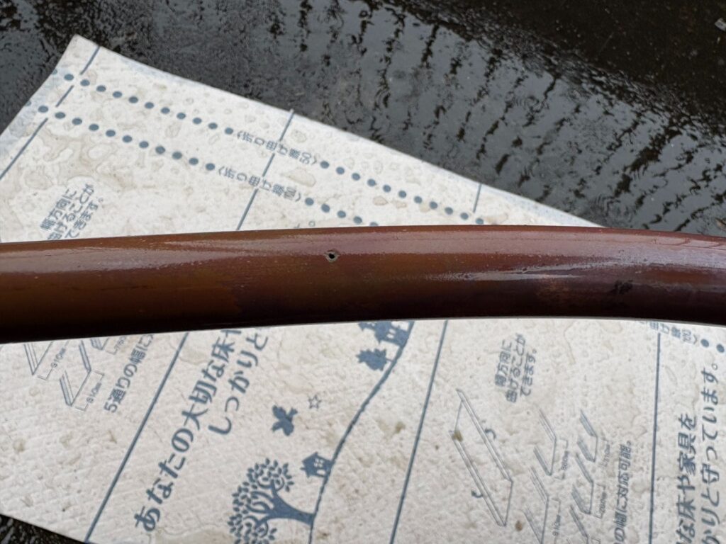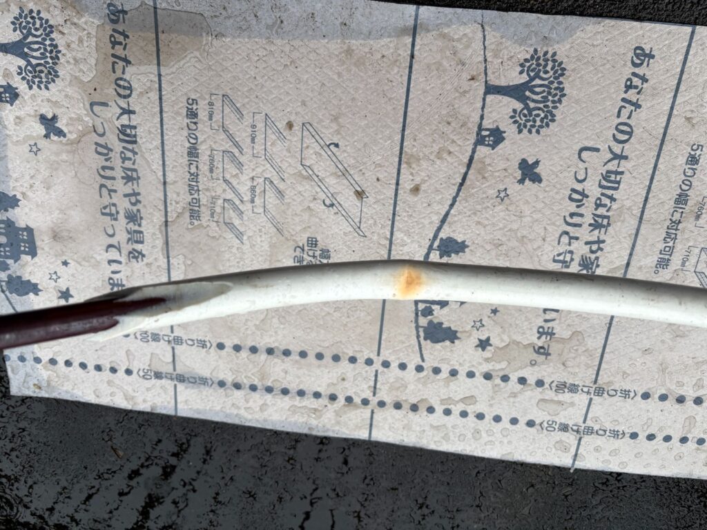 被覆銅管を撤去し不自然な折れ曲がりを剥いてみるとピンホールになっていました。
